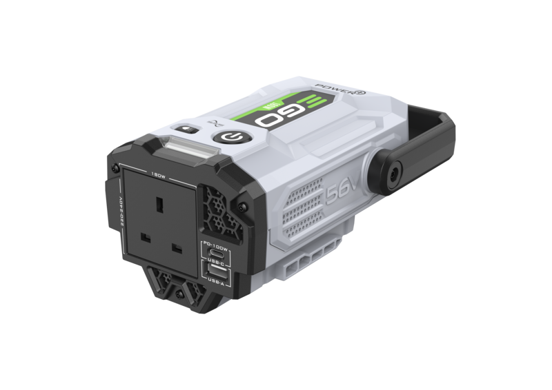 Az EGO Power+ Nexus Escape 220–240 V-os Inverter 1db váltóáramú aljzattal és 2db USB porttal rendelkezik, mellyel Ön könnyedén tölteni vagy használni tudja elektromos berendezéseit 180 W teljesítményig.